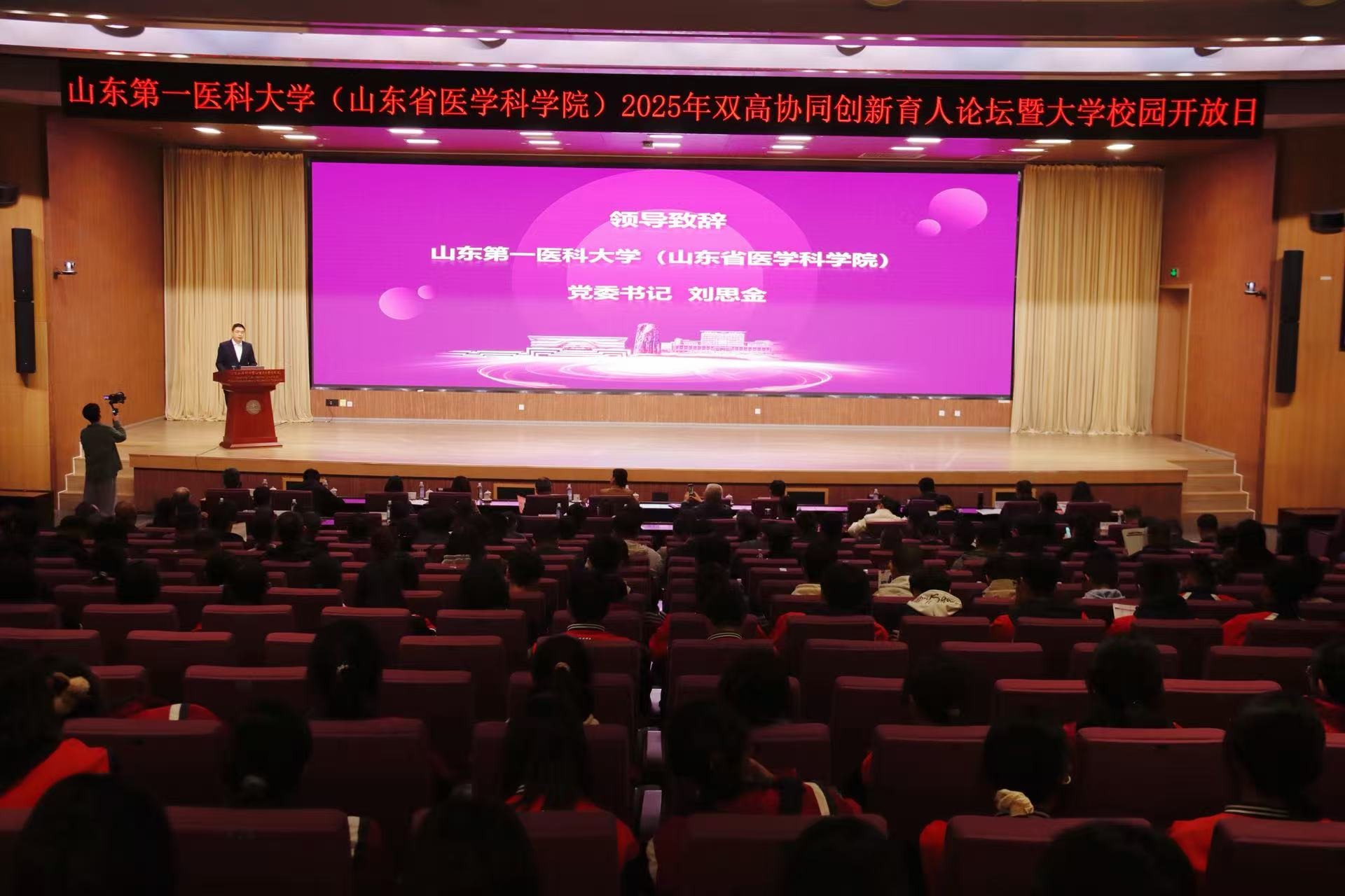 11月1日,山东第一医科大学(山东省医学科学院)双高协同创新育人论坛暨校园开放日活动举办。来自省内外的教育主管部门负责人,初高中学校及校(院)师生代表齐聚一堂,共同围绕“深化双高协同,共促医学人才培养”主题展开深入交流。有800余名初高中学生参与到校园开放日活动中。校(院)党委书记刘思金致辞。山东省教育招生考试院党委书记、院长李霞到会指导工作并致辞。高中校长代表及家长代表分别致辞。副校(院)长刘传勇主持开幕式。